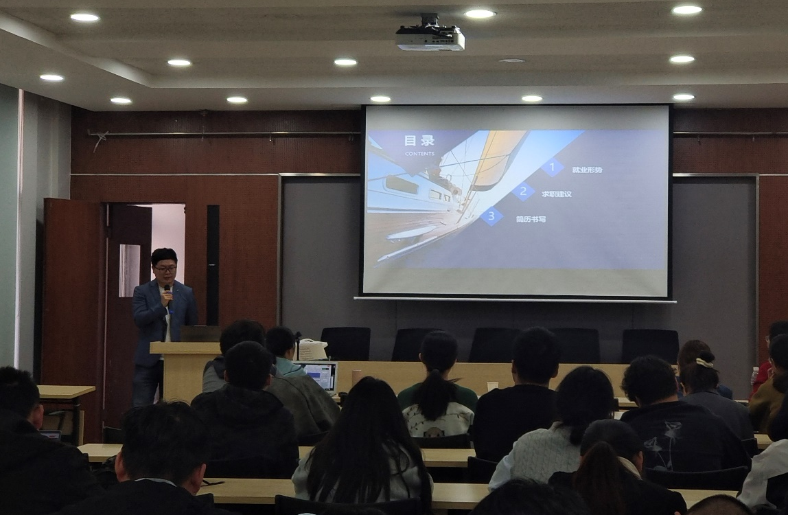 随后,南京海纳医药科技股份有限公司人力资源总监梁江西先生为同学们带来了专业的简历撰写指导。梁总监指出,简历撰写需要遵循一定的原则,比如简洁明了、重点突出、格式规范等。他详细讲解了简历中应包含的个人信息、教育背景、工作经历、特长爱好等各个部分,并特别强调了工作经历和教育背景的重要性,指出工作经历应详细列出工作单位、职位、工作时间和职责,并突出自己的成绩和贡献;教育背景则应详细列出公司、专业、毕业时间等信息,并补充学位或获奖经历等。