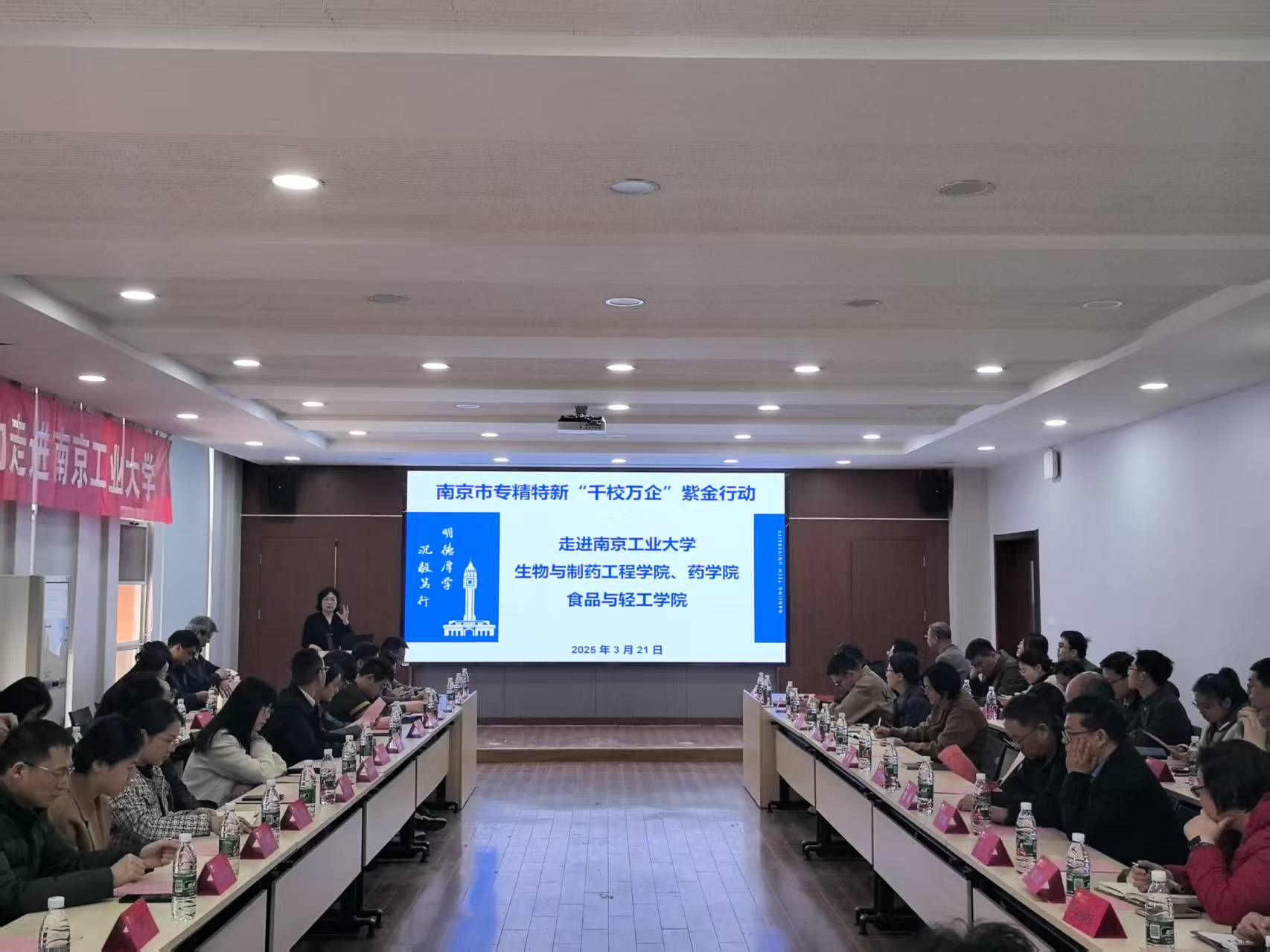 3月21日下午,南京市专精特新“千校万企”紫金行动走进南京工业老员工物与制药工程公司、药公司、食品与轻工公司。3个公司的科研人员代表推介了合成生物制造、药效评价、医药中间体、功能性食品等研究方向的科研成果,全国高校生物医药区域技术转移转化中心(江苏南京)介绍了服务高校成果转化工作情况,省级专精特新中小企业南京羚诺生物医药技术研究院有限公司发布了基于建模与模拟开发创新药物的校企合作需求。同时部分专精特新企业同步参加了bevictor伟德2025届毕业生春季促就业攻坚行动“生物医药与大健康专业集群”毕业生专场招聘会。