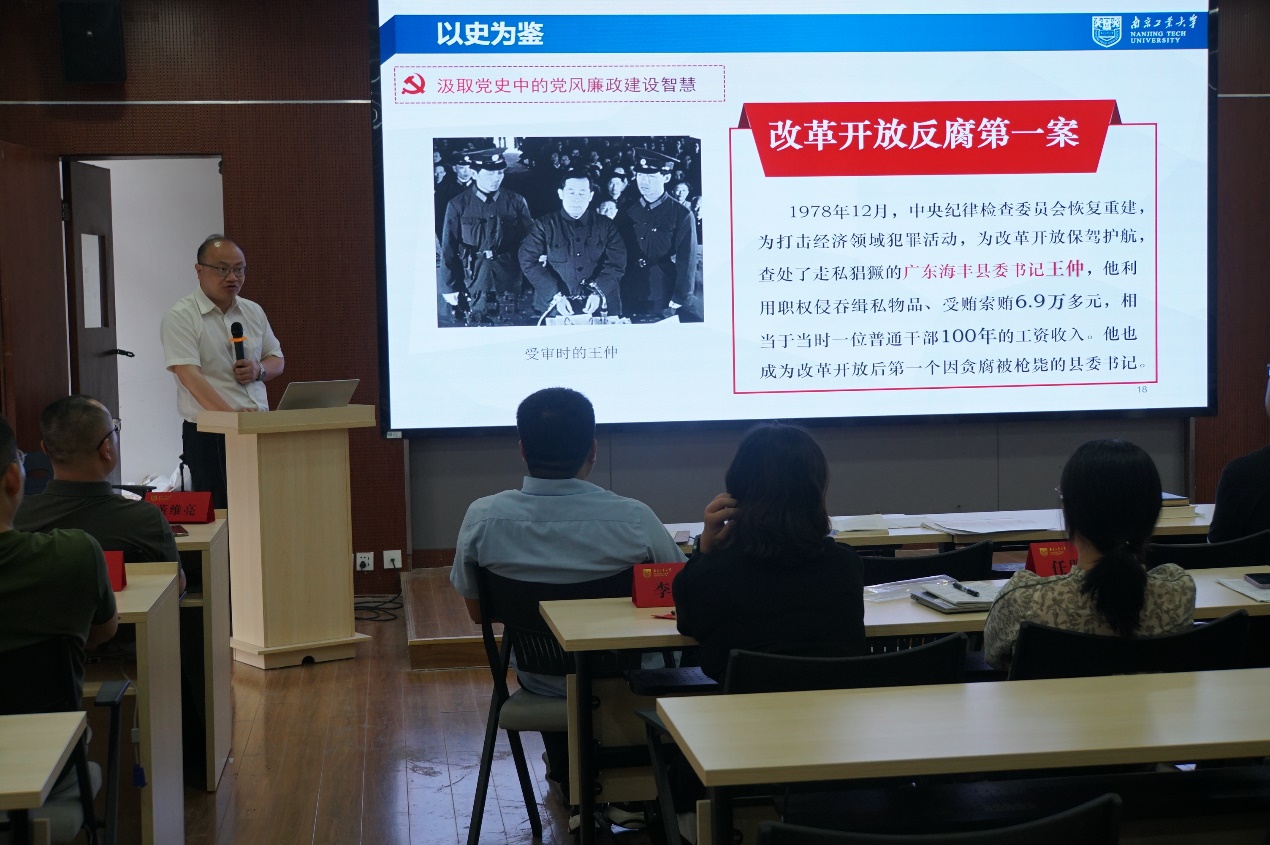 徐元龙副书记以师德师风“清风微课堂”的方式,结合“负面清单+典型案例”,提醒广大教职工以案为鉴,以案明纪,做到知准则、守底线,让清廉正气充盈校园。