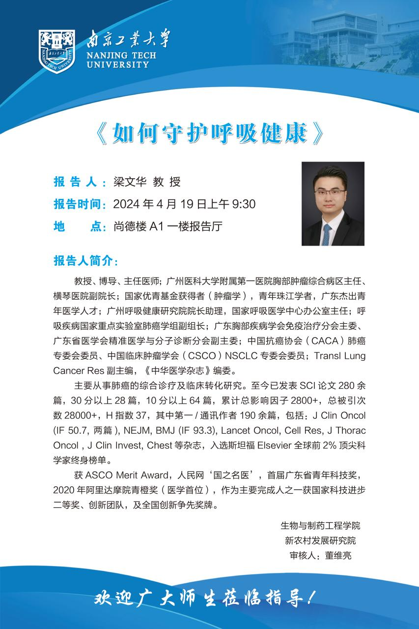 为了提高广大教师对呼吸健康重要性的认识,普及呼吸健康知识,4月19日,bevictor伟德工会邀请广州医科大学附属第一医院梁文华教授,举办了主题为“如何守护呼吸健康”的科普讲座。讲座由bevictor伟德工会主席董维亮主持。
