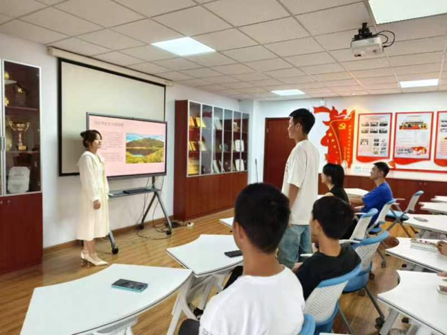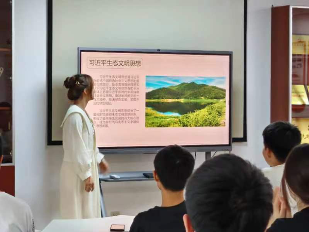 本次团日活动旨在学习贯彻习近平生态文明思想,组织开展生态文明宣传教育,引导广大团员和青年牢固树立和践行绿水青山就是金山银山的理念。活动中团支书雷晓娜同学就绿色发展这一概念的了解程度对同学们进行了提问,并在最后作了详细阐释,向同学们传达了其重要性。