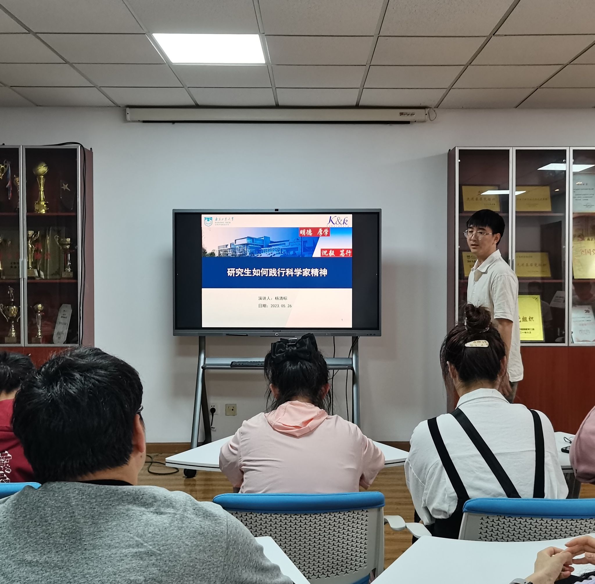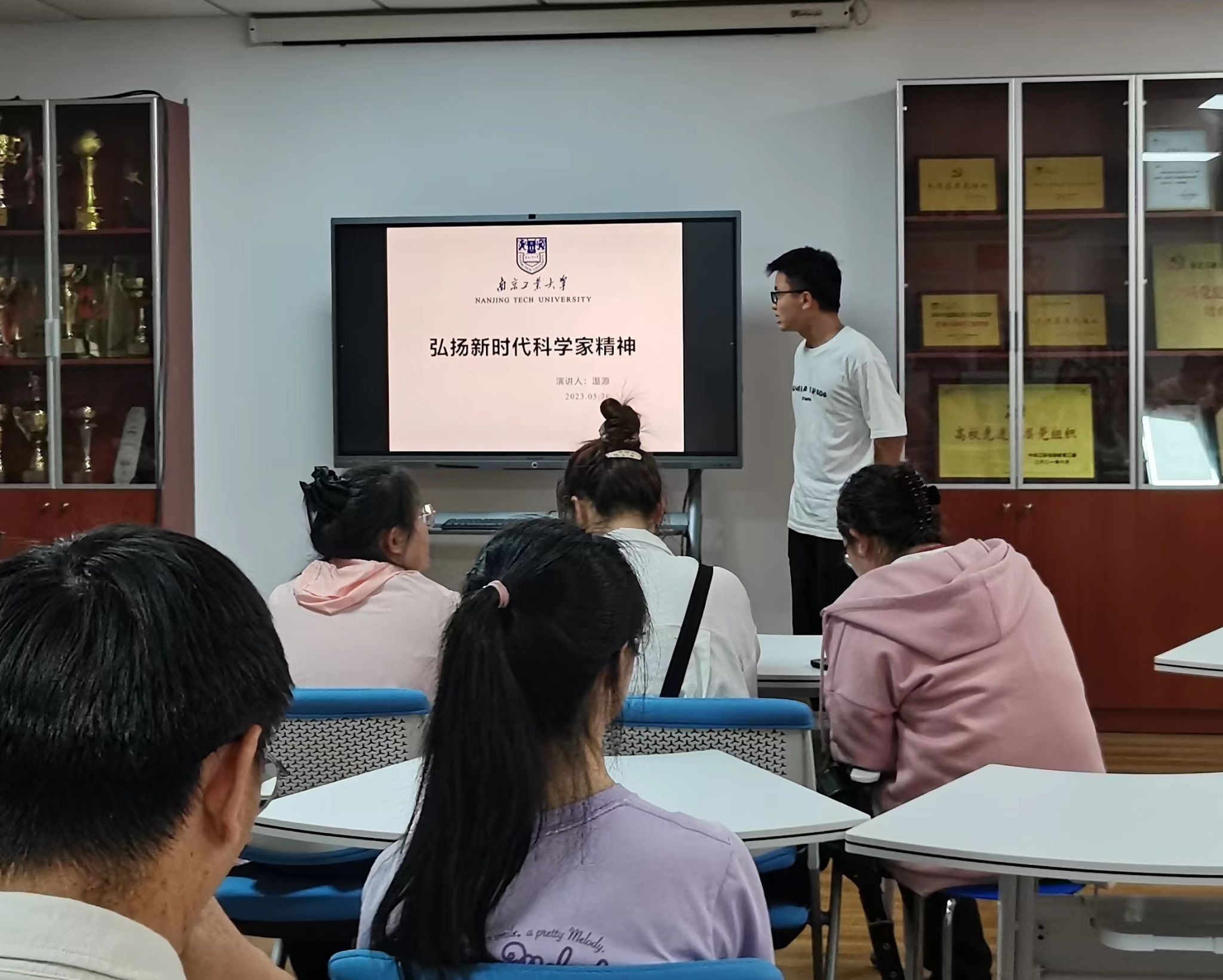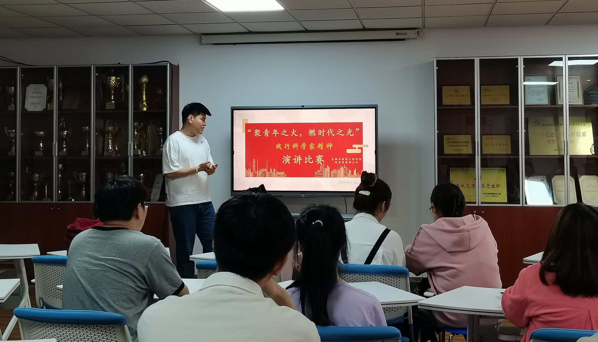 习近平总书记在科学家座谈会上指出:“科学成就离不开精神支撑。科学家精神是科技工作者在长期科学实践中积累的宝贵精神财富。”为大力弘扬科学精神,2023年5月26日晚,生工学科群“聚青年之火,燃时代之光”践行科学家精神演讲比赛在尚德A1-208党员之家举行。本次活动由院研究生会组织,60余名本科生及硕士研究生参加活动。