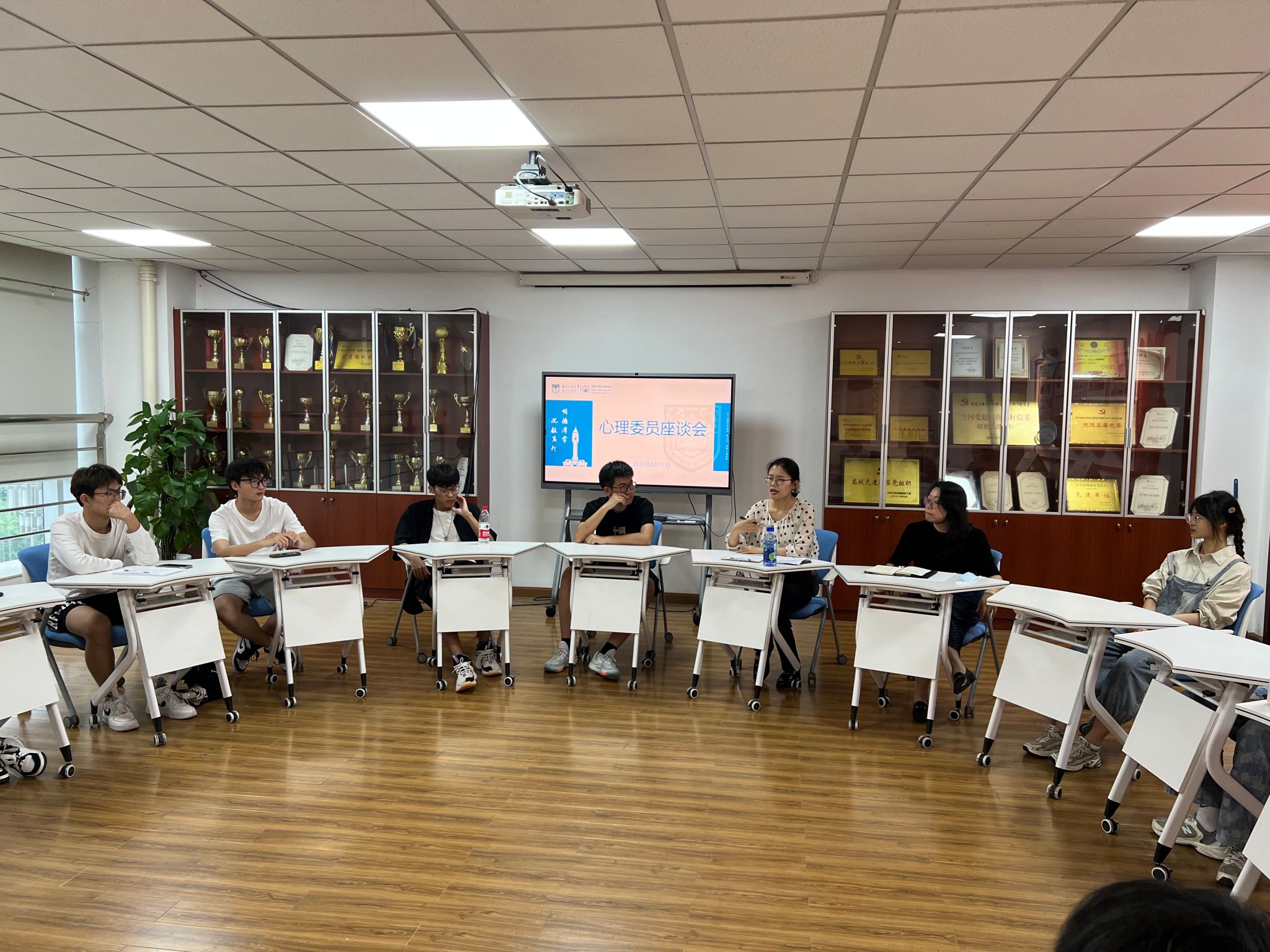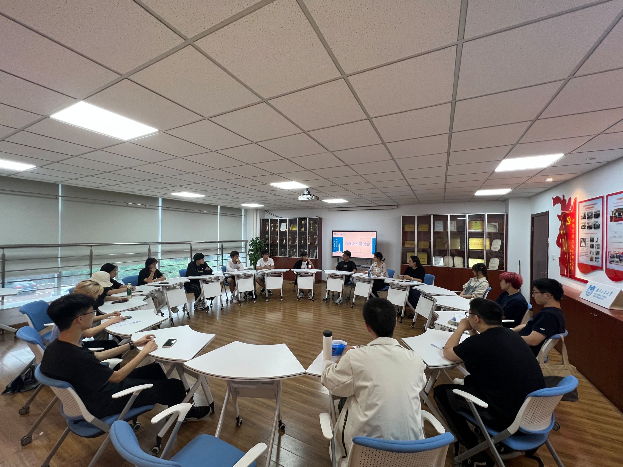 5月17日下午,公司召开老员工心理健康教育大讨论。校心理健康教育指导中心胡明慧老师、公司员工办公室主任朱皓老师与各班级心理委员共同研讨老员工心理健康教育工作。