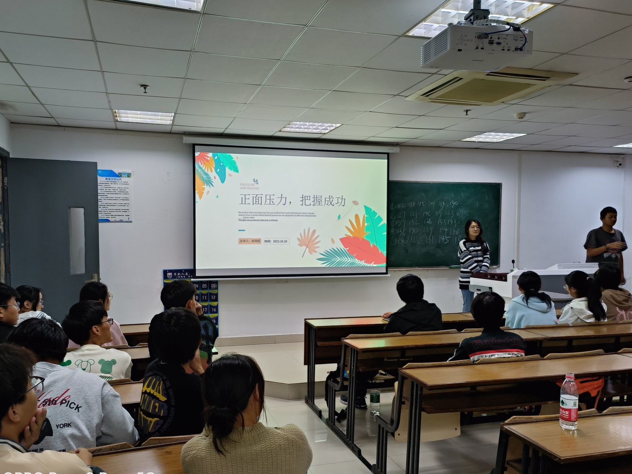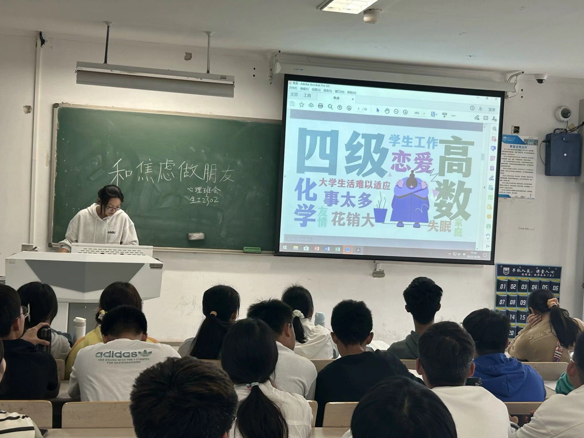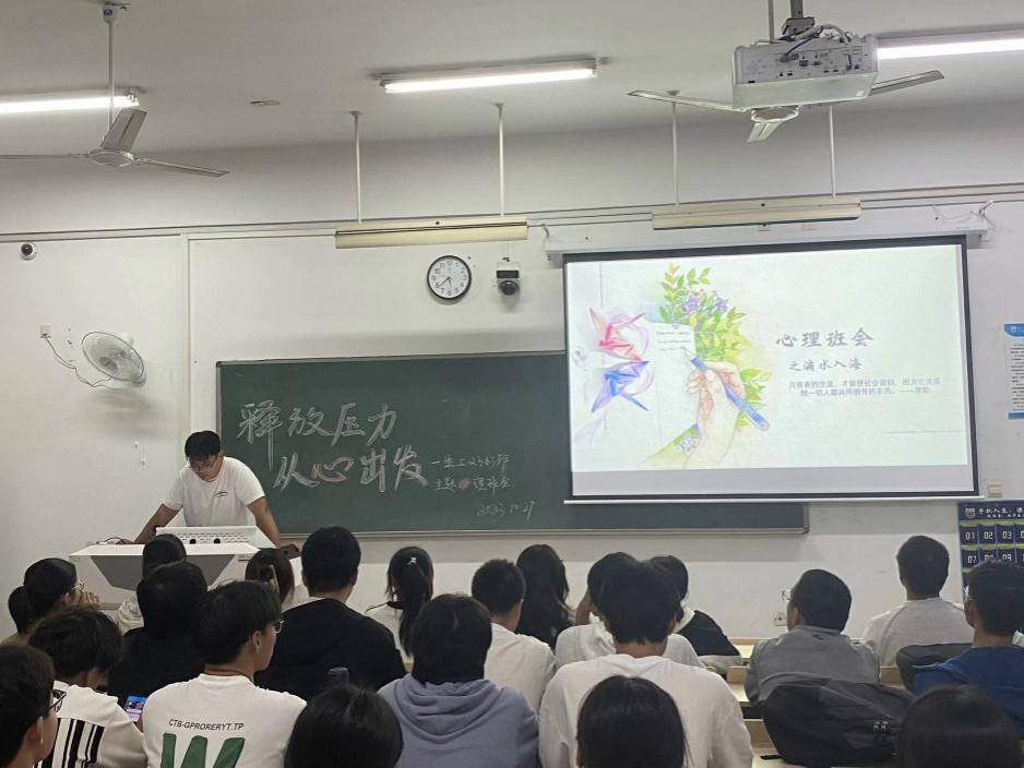 本次心理班会活动主要面向大一年级各班开展。各班基于班级情况以及专业特色,立足同学们的实际需求,采用多元的活动形式切入班会主题。各班心理委员紧紧围绕所选主题,设置各种游戏环节来调动同学们的积极性,如“你画我猜”、“击鼓传花”、“传声筒”等,使同学们积极参与到班会中来,引导班级同学正确面对心理压力,更好地帮助同学们放松心情。