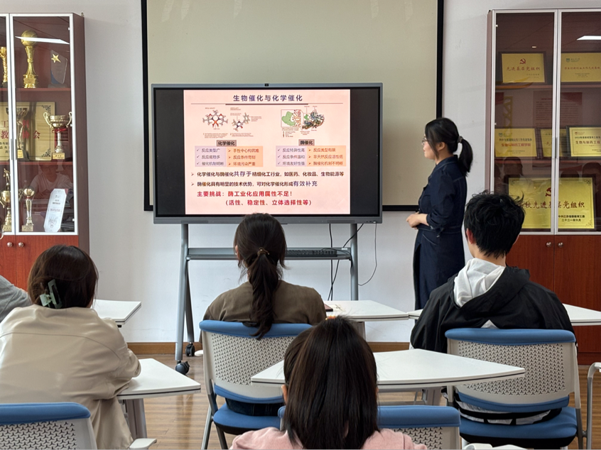 此外,胡老师还介绍了酶催化的发展前景和合成生物学等热门研究方向,并由此引出对同学们对未来研究方向选择的指导和建议。最后,胡老师还简单介绍了合成生物学等热门研究方向,建议希望同学们根据自己的兴趣和性格,早日对自己的职业未来有较清晰的规划。