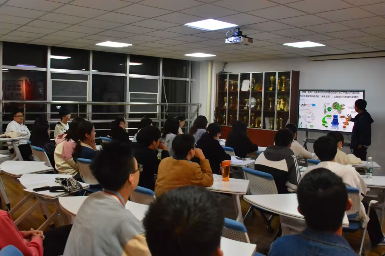 冯艺荣老师从市场需求和政策战略性引导出发,点出了当下对生产原料(资源)和生产方法(路线)大变革的迫切需要,引出微流场反应技术开发及应用的研究。以聚氨酯为例讲述了研究全过程,用丰富易懂的类比解释了一些晦涩难懂的专业技术和专业理论,更生动地展现了科研的独特魅力。让同学们在了解科研大致流程和感受科研魅力的同时,也更加明确了科研的着眼点和落脚点。冯老师跟同学们强调,科研始终要面向国家重大需求,顺势而为,服务于国家战略部署,服务于区域经济,要注重实情的探寻、问题的诊断、需求的认同且要有一定的引导启发。