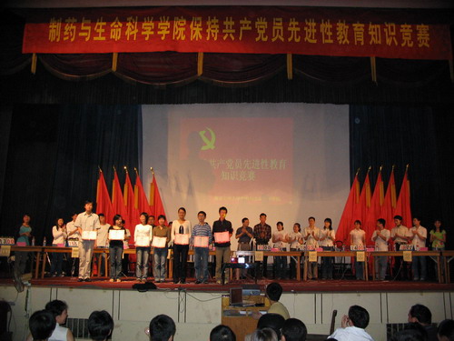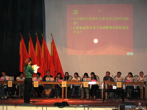 本次知识竞赛以《保持共产党员先进性教育读本》、胡锦涛同志在新时期保持共产党员先进性专题报告会上的讲话以及《高校保持共产党员先进性教育基础知识百题》等材料为主要内容,基本涵盖了党的基本知识和中央、省委及公司关于先进性教育活动的总体要求。竞赛活动分为必答题、观众互动题、风险抢答题、革命经典影片音乐题、描述题等环节。显然,大家都经过了精心的准备,台上党员争相答题你追我赶,台下党员互动抢答也不甘示弱,整个赛场气氛既严肃紧张又不失轻松活泼。大家在笑声掌声中加深了对党的知识理论的理解,在革命电影音乐片断中重温了我们党的风雨历程。最终,在扣人心弦的加时赛的角逐中,表现出色的硕研04级第三党支部、硕研04级第一党支部和教工党支部代表队分别荣获冠军、亚军和季军。