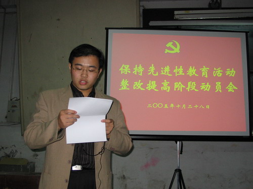 10月28日下午,公司在丁家桥校区教学楼101教室召开先进性教育活动分析评议阶段总结暨整改提高阶段动员会。会议由公司党委副书记何学军同志主持。