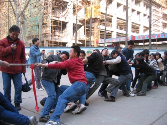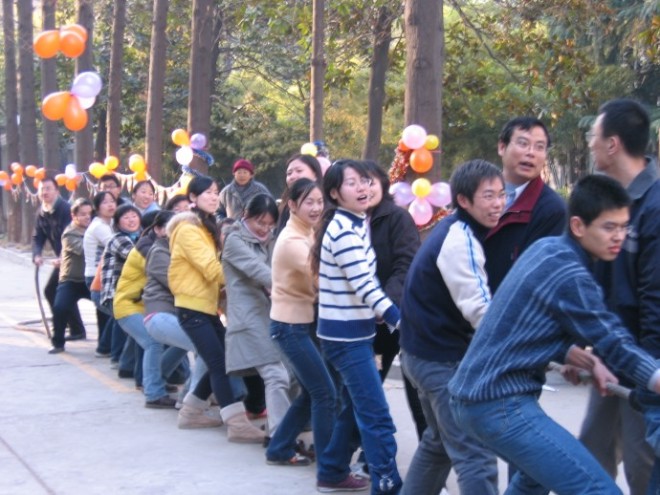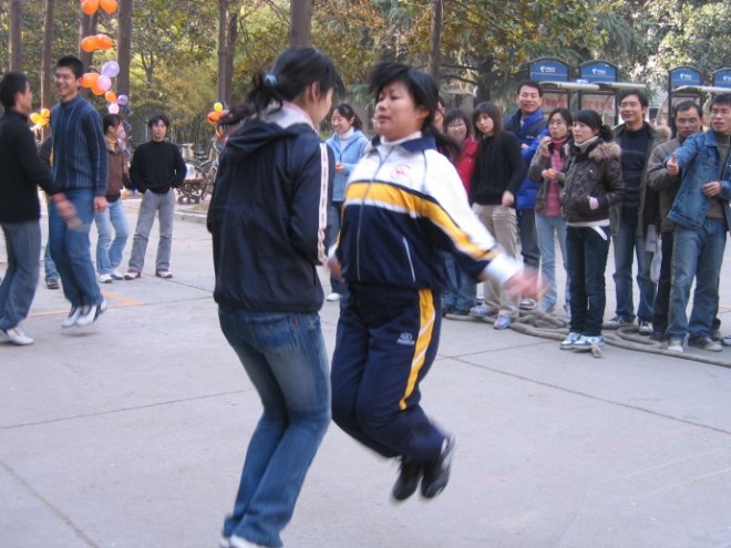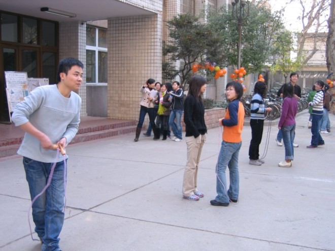 整个比赛充满了蓬勃的朝气和青春的活力,生动地体现出了同学们奋发向上的精神风貌和身手不凡的比赛成绩。在踢毽子比赛中,杨明以一分钟踢110个的佳绩夺取了冠军,而紧随其后的是余作龙,他以107个的成绩屈居第二;在跳绳比赛中,来自bevictor伟德硕研0504党支部的郭一丹和她的搭档段柳默契配合,她们以一分钟跳160下的惊人成绩获得了双人跳绳的第一名。拔河比赛更是惊心动魄,A组米奇队和B组QQ队实力相当,在喊声震天的气氛中,两队各赢了一场,在这种情况下,米奇队不慌不忙,沉着应战,最终以2:1赢了QQ队。而QQ队虽败犹荣,因为他们同样赛出了团队精神,赛出了青春的活力。