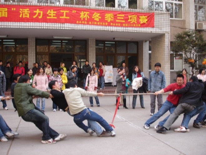 公司党委书记缪昌美老师应邀为首届“活力生工”杯冬季三项赛发表了热情洋溢的致词,鼓励同学们赛出友谊、赛出水平、赛出活力,并将这种活力与激情融入研究性的学习和工作中去。博士生导师张赣道教授等老师应邀参与其中并担当起拔河比赛的裁判员。