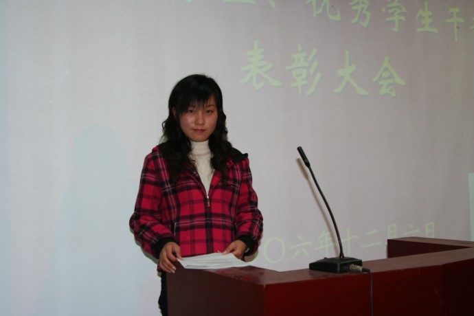 ——2004级生物技术专业优秀员工干部代表周兰芝同学发言