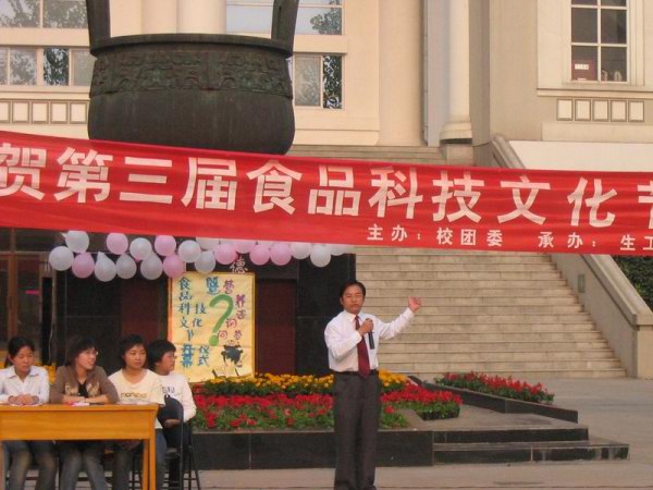 10月9日下午,制药与生命科学公司分团委在沉毅广场隆重举行食品科技文化知识竞赛暨食品科技文化节开幕式。经理韦萍、党委书记缪昌美、副经理周华、党委副书记张琪、各系负责人和有关教授应邀出席了开幕式。缪昌美老师为开幕式致词,他激情的讲话如同缤纷的礼炮绚丽而激昂,点燃了现场活跃的气氛。