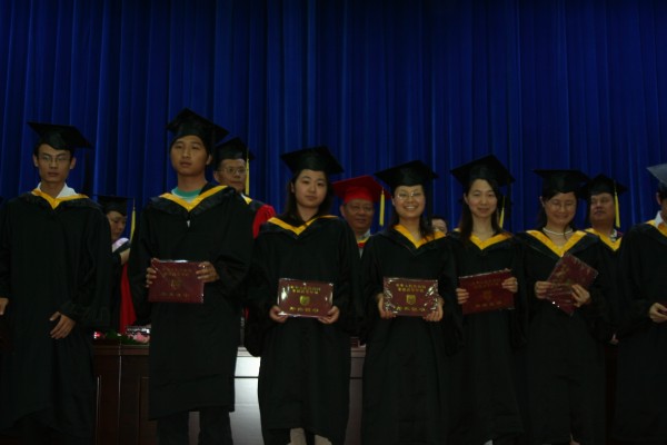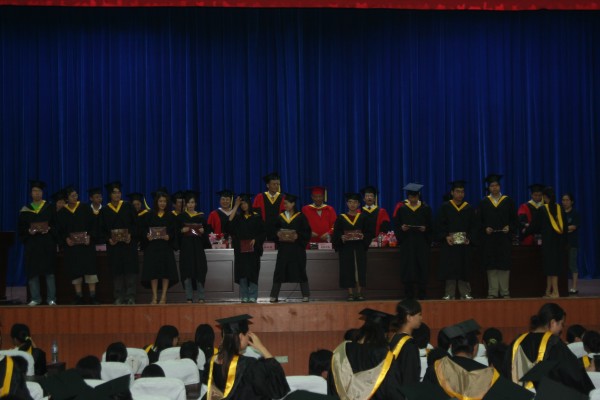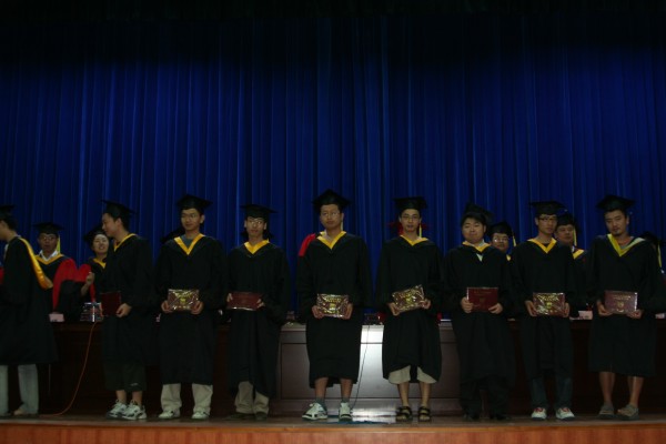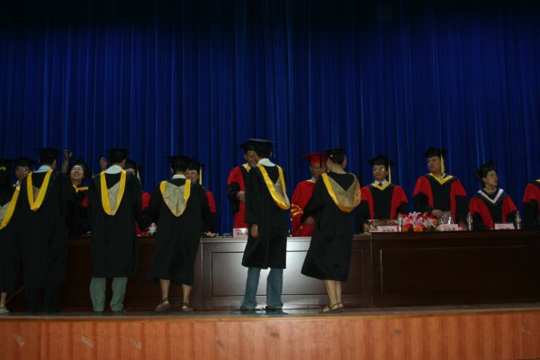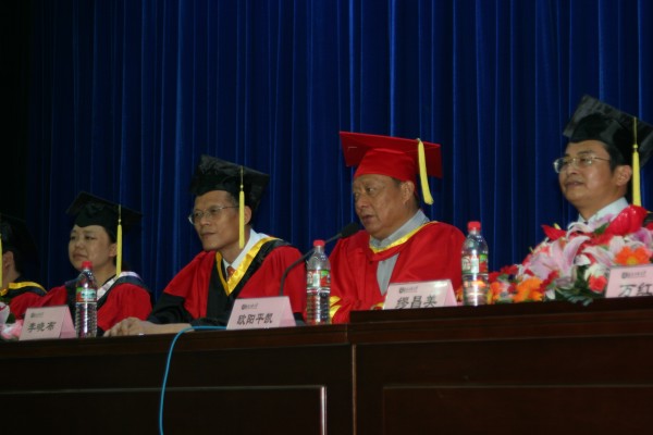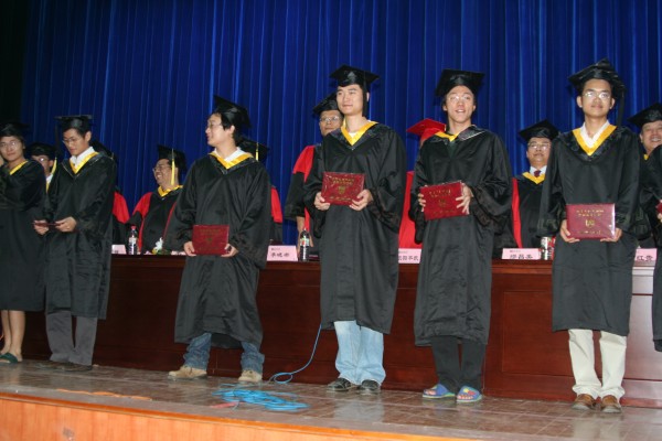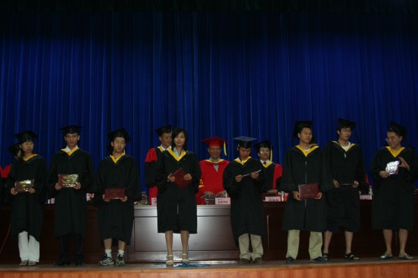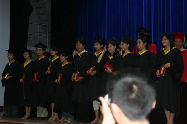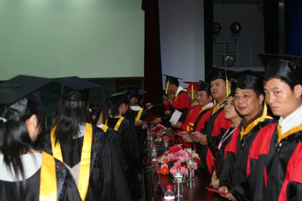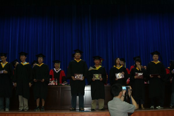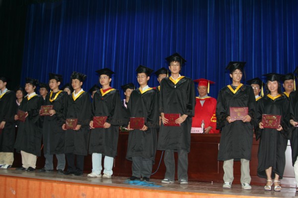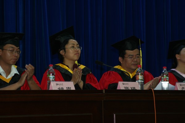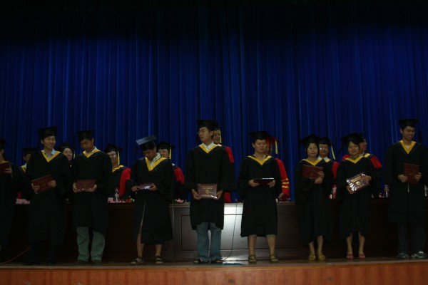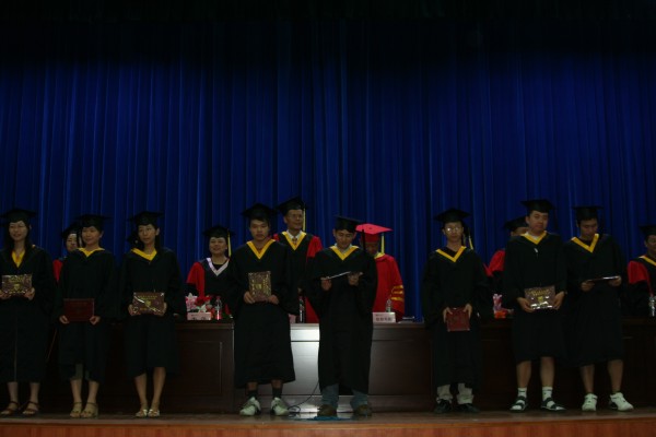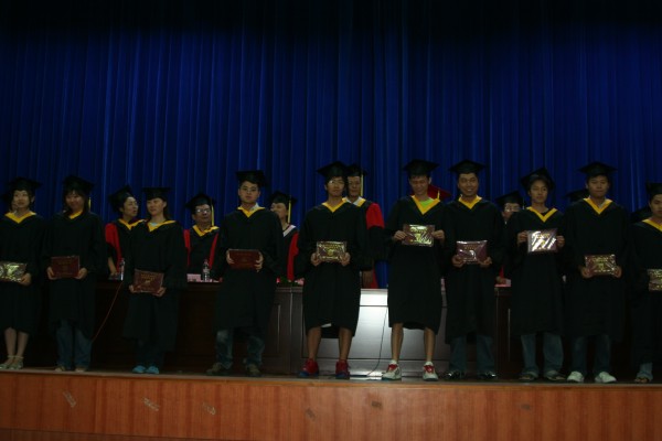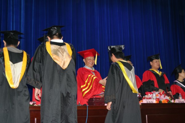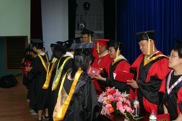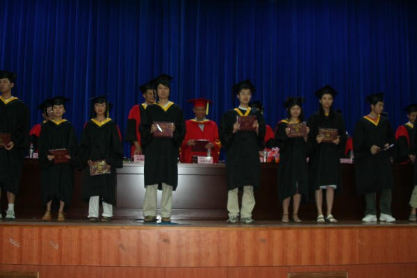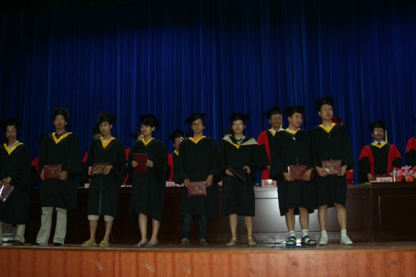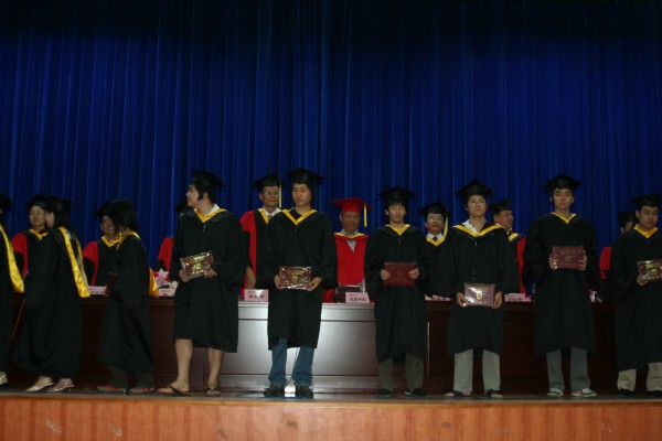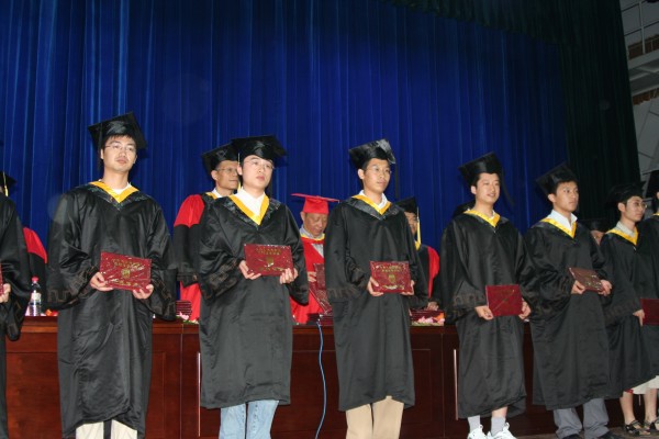 卢定强副经理宣读了关于2006届毕业生成绩合格、准予毕业的决定。280名毕业生在欢快的乐曲声中依次走上主席台,从导师手中接过深红的毕业证书并合影留念,感受顺利完成学业后的喜悦。