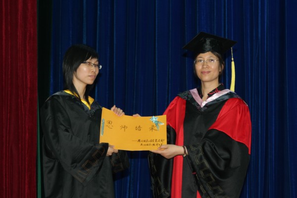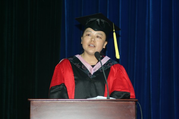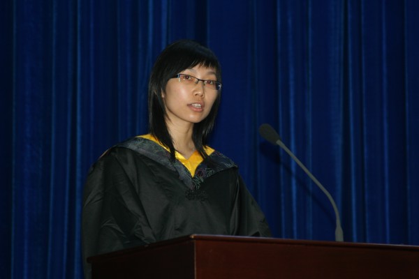 校优秀毕业生余惠明同学、院员工会主席李红倩同学相继作为毕业生和在校生代表发言。其间,何冰芳教授、余惠明同学分别代表教师和毕业班员工向毕业生和低年级员工赠送了恩师赠言和毕业留言。对母校的眷恋、与同窗的友谊、以及对未来的憧憬和希望,都通过她们的言语在礼堂中久久回荡。