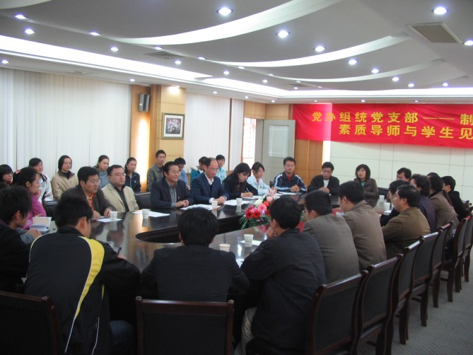 见面会上,党办组统党支部书记张锋老师首先介绍了支部每一位党员情况,他说:通过今天的活动,我们党支部的每一位党员就与相联系的同学建立了帮带关系,“素质导师”们主要将围绕帮助员工尽早适应老员工活、引导员工形成正确的人生观、价值观和世界观、帮助员工处理好学习与生活之间的关系、激发员工爱国荣校的热情等方面帮助和指导员工,力争让支部每一位党员成为员工们思想上的引路人、学习上的良师益友、生活上的知心好友、就业路上的亲密朋友。广大同学在大学四年中,在思想上、学习上、生活上以及在就业和生涯规划等方面有疑难困惑或遇到挫折,都可以通过电话、E-MAIL或见面等方式与支部党员取得联系,我们支部每一位党员会主动帮助他们解决困难,积极为同学们创造给一个健康、向上的环境,努力为构建和谐文化、和谐校园做出积极的贡献。