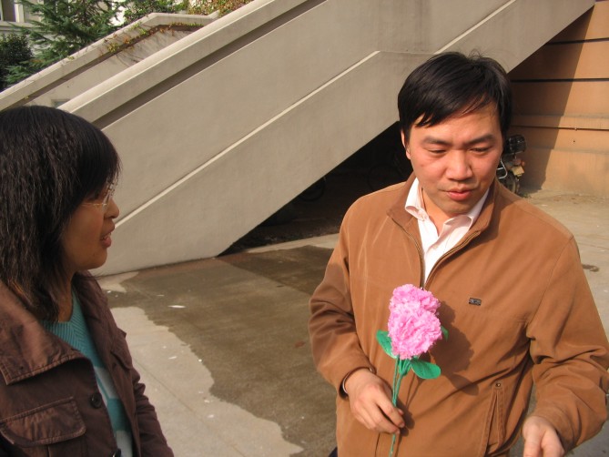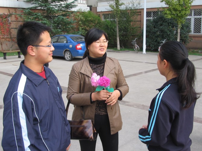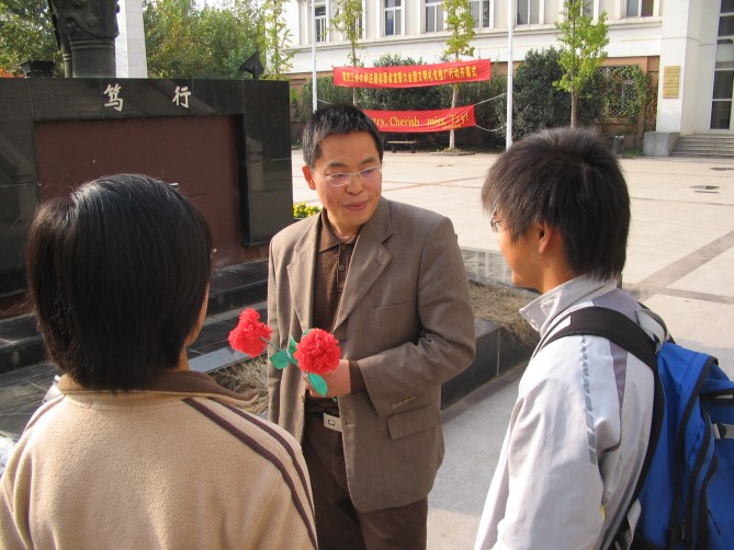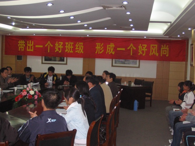 会上,支部每一位成员都用一句话(如:用爱心和同学交心,坚持恒心,充满信心做好每件事;带着压力、互帮互助、期待美好明天;真诚热情做好服务;工大人、工大情;主动加主动;踏踏实实做好每件事;交朋友、共筑友谊等)来表达了对做好这项工作的决心。同学们为了感谢每位“导师”的关心,亲自手工制作一支花送给各自的“导师”,花的叶片上写下员工的姓名联系方式和他们的座右铭。见面会之后,大家在“带出一个好班级,形成一个好风尚”的横幅上签名并一起合影留念,支部党员和联系的员工“一对一”的交流谈心,并把各自的联系方式给了每一位同学。