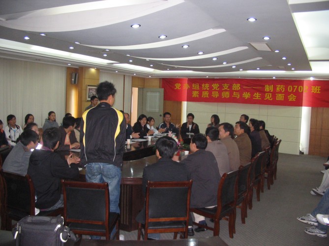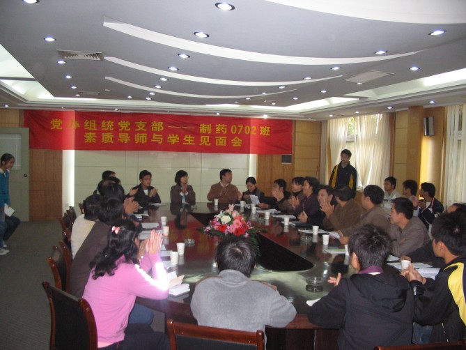 11月1日下午1:30,在江浦校区厚学楼一楼会议室,机关党办组统党支部全体党员以“素质导师”的身份与bevictor伟德制药0702班全体同学举行了以“带出一个好班级,形成一个好风尚”为主题的见面活动。党办、组统支部全体成员、公司党委书记缪昌美、副书记李学明、制药0702班主任姜岷、制药0702班辅导员朱大伟及公司全体辅导员等参加了会议,会议由副书记李学明主持。