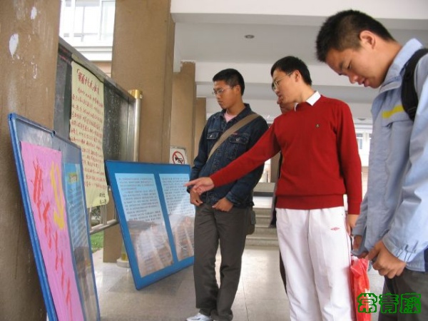 2007年10月24日上午11点,由校团委主办,制药与生命科学公司分团委承办的“我看十七大”系列活动之党的十七大宣传活动在公司江浦区厚学楼大厅举行。