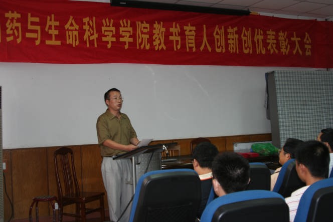 时值全国第23个教师节到来之际,9月10日下午制药与生命科学公司召开了教书育人创新创优表彰大会。会议由缪昌美书记主持,他代表公司党委、院行政向全院教师致以崇高的敬意、诚挚的谢意和美好的祝福。出差在外的韦萍经理、徐虹副经理特地打电话向全院教师表示了节日的问候。会上,周华副经理宣读了2006-2007学年公司取得的各项荣誉。卢定强副经理宣读了关于表彰2007年度奥赛康奖教金获奖人员的决定。南京奥赛康医药有限公司副总经理张建义先生和公司领导共同为获奖教师颁发了奖教金和获奖证书。