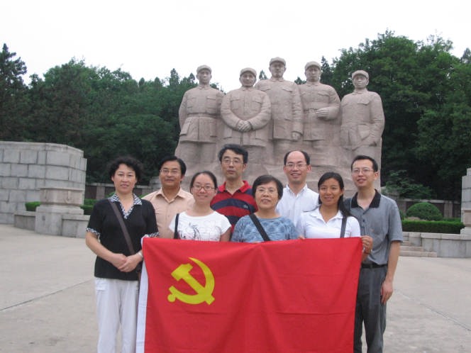 时值建军80周年之际, 由制药与生命科学公司党委书记担任队长,多位教授、博士组成的社会实践团队来到徐州市淮海战役烈士纪念塔,开展以“见证革命历史,感悟爱国情怀”为主题的社会实践活动。沿着革命前辈的足迹,队员们参观了淮海战役烈士纪念塔。近50米的纪念碑,耀下相交的两支步枪和松籽绸带组成的塔徽,令人不禁肃然起敬。在纪念塔前,队员们默哀致敬,缅怀先烈。随后又瞻仰了五前委雕塑,感受五位领导人的飒爽英姿。