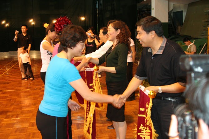 在比赛开始前,首先进行了大众健身操集体表演。参加表演赛的共有11个院系的代表队,各代表队身着艳丽的健美服,表演了充满活力的健美操。整个表演赛精彩纷呈,好戏连台,美妙绝伦,博得在场观众的阵阵掌声。激烈的角逐后,评委们紧张而慎重地评分。最后,裁判长杨晓婕宣布了表演赛成绩,校工会主席杨兴南宣布了获奖单位,在座的观看比赛的领导为获奖的院系颁奖。公司女教职工通过奋力拼搏,获得了“大众健身操表演赛”二等奖。