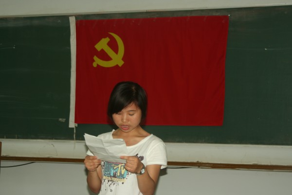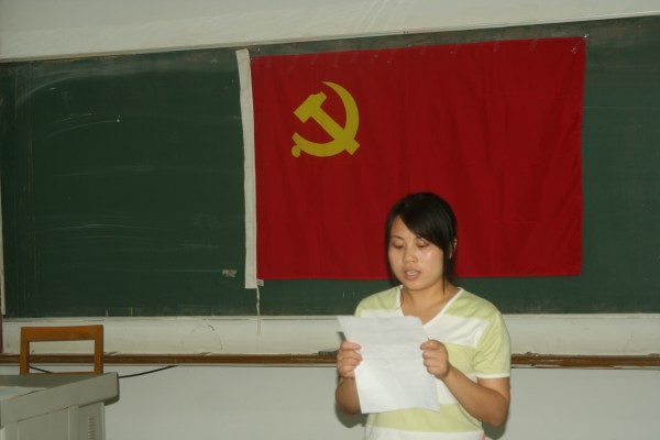 研究生新党员代表杨雪琴同学发言,她代表各位参加入党宣誓的新党员向党组织表示,在以后的工作、学习中,要做到不断加强对党的基本知识的学习,加强党性修养,提高政治素养;做到人生追求有志气,为民服务有勇气,社会生活有正气,个人得失有大气;时时以党员的标准衡量自己,处处起模范带头作用,决不做有损于共产党员这个光荣称号的任何事,为我党的兴旺发达做出应有的贡献。