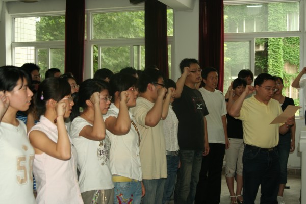 2008年6月19日下午,公司在教学楼301多媒体教室举办了新党员宣誓大会。大会由公司党委副书记李学明主持。在雄壮的国歌声中,师生们肃然起敬。在公司党委委员、经理助理姜岷同志的带领下,新党员们面向党旗庄严宣誓。