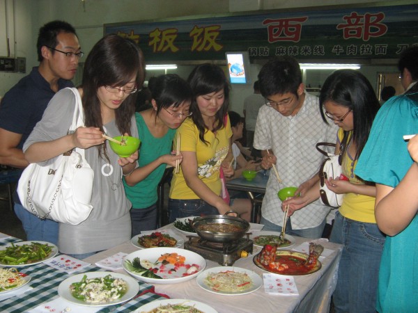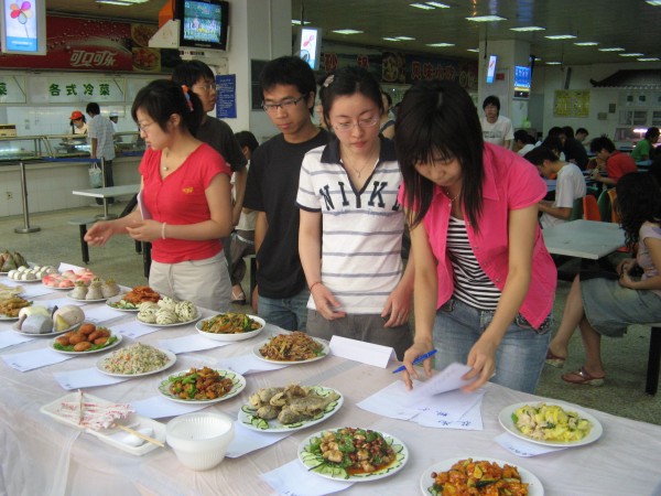 系列活动分为三个环节,第一项是“菜价对比”:把南邮、药大和公司食堂的菜价作对比,并向同学们公布,公司丁家桥校区食堂的菜价在附近各大高校之间处于中等水平,有少数还比其它公司便宜;第二项是“调查问卷”:通过在全校研究生范围内分发调查问卷表以及进行校园网上投票,了解同学们日常生活中最关心的问题主要是生活费紧张、食堂饭菜质量有待提高等等;第三项是“特色菜评比”,也是该系列活动的高潮!