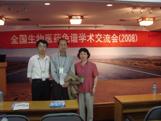 ——刘晓宁、魏荣卿教授与大会主席、《色谱柱技术》主编、中科院化学所研究员刘国诠先生合影留念
