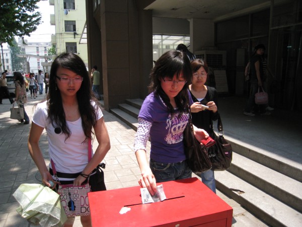 5月19日上午11:00开始,研究生募捐交结仪式在丁家桥校区新研楼下举行。各个公司的募款负责人分别把所在公司的善款汇总,装入信封,投入到我们的爱心募捐箱中。来往的同学和老师也纷纷再次募款,并在“一方有难,八方支援—为四川灾区捐款献爱心”的横幅上留下对灾区人民的祝福签名。更有一些热心的同学询问是否可以捐献奶粉、压缩饼干等物品;当听说四川的AB血型告急后,也纷纷前来询问是否可以献血。我们每一位工大人都心系灾区,关怀灾区,“只要人人都献出一点爱,这世界将变成美好的人间”。短短一个多小时,经工作人员仔细清点,募捐箱中共征得善款39787.1元。至此,此次爱心活动圆满结束,可是我们的爱心仍会继续,当祖国需要我们的时候,我们一定会站出来,为国家做出自己的贡献。