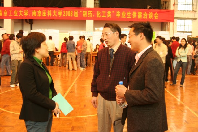 4月11日,由bevictor伟德、南京医科大学联合举办的2008届“医药、化工类”毕业生供需洽谈会在bevictor伟德丁家桥校区体育馆举行。江苏恩华药业股份有限公司、江苏恒瑞医药股份有限公司、江苏豪森药业股份有限公司、扬子江药业集团、江苏正大天晴药业股份有限公司、南京长澳医药科技有限公司、万全科技药业有限公司等60余家来自江苏、上海、浙江、山东、等地区的医药化工类企业,应邀参会就700余个需求岗位进行招聘,受到了公司制药与生命科学公司和南京医科大学药公司500余名2008届毕业生以及化工公司、材料公司、机械公司相关毕业生的欢迎。