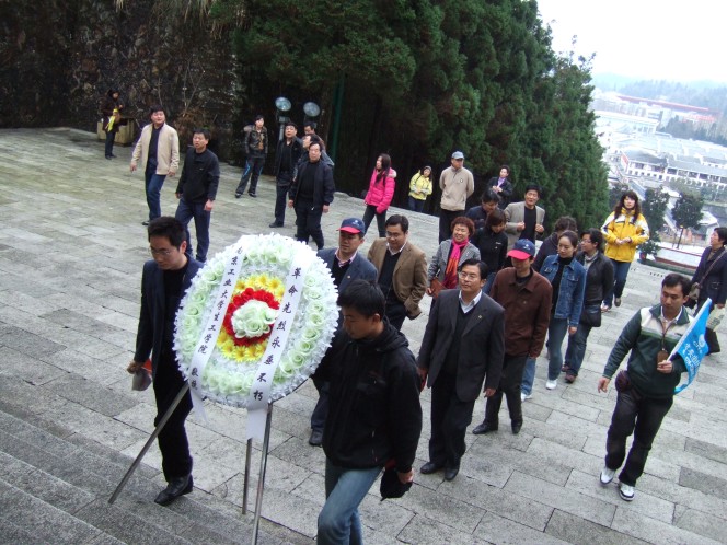 在井冈山根据地烈士陵园,大家满怀崇敬之情向所有为革命献出生命的先烈敬献了花篮,寄托无尽的哀思。接着,党支部在这里举行了一次具有特殊意义的入党宣誓仪式,所有的党员在鲜艳的党旗下齐刷刷地举起右手,面对一万五千余名死难的革命烈士庄严宣誓:“我志愿加入中国共产党,拥护党的纲领,遵守党的章程,履行党员义务……”
