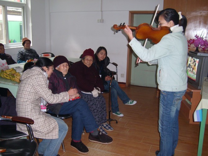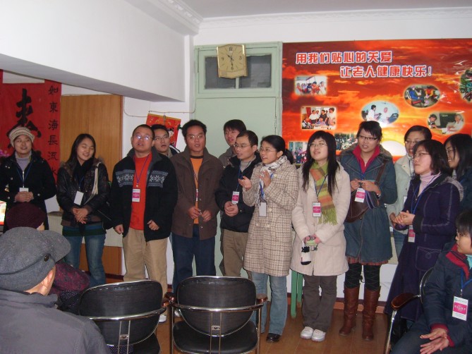 公司研究生会爱心志愿者协会自2007年12月1日成立以来,开展“关爱老人,服务社会”系列活动,吸引了越来越多的同学加入了爱心志愿者的行列。新年伊始,爱心志愿者协会的同学们于第一个星期六再次走进观音里社区敬老院,与老人们共同度过了一个愉快的、记忆深刻的上午。同学们给敬老院的老人带去了水果,并表演了丰富多彩的娱乐节目。节目有京剧《红灯记》选段、小提琴《青春》、歌曲《大中国》等,这些都是老人们喜闻乐见的。在一首首熟悉的旋律中,面对熟悉的面孔,老人们敞开胸怀,与同学们聊起他们的生活和经历。老人们的生活阅历很丰富,就像一本书。同学们也从中了解了很多,受到不少启发。不少老人激励我们发奋读书,将来报效祖国。临走前,志愿者们合唱了一曲《常回家看看》,表明了大家秉承美德、知善感恩的情怀。