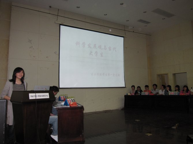 活动的第一个环节是PPT展示学习心得,5位同学分别代表所在党支部,围绕科学发展观的内涵、实质和要求,紧贴国情,联系实际,旁征博引,以丰富翔实的图文信息和声情并茂的演讲口才,交流学习实践活动的心得体会。他们的讲演既通观大局又着眼实践,既通俗易懂又内涵丰富,赢得了与会师生的阵阵掌声。活动的第二个环节是知识竞答环节。5个代表队在紧张活泼的氛围中尽显学习功底。选手们才思敏捷的反应、扣人心弦的抢答、台上台下的互动共鸣,把现场的活动掀起了一个又一个高潮。经过激烈的角逐,轻化工程党支部代表队、生工员工第一党支部代表队、药剂食品党支部代表队分别取得一、二、三名的好成绩。公司党校常务副董事长夏侃等领导分别为获奖同学颁奖合影。她从选手们的精彩表现中感到广老员工在学习实践活动中的收获令人可喜,坚信广大同学作为中国特色社会主义事业的建设和接班人,通过学习实践活动将科学发展观在头脑中扎下根来,对于创造我们更加美好的明天将具有十分重要的历史现实意义。