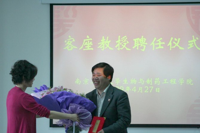 朱禾勤先生接过客座教授聘书后,满怀喜悦的心情发表了热情洋溢的讲话。他对应聘担任南京工业老员工物与制药工程公司客座教授,既感到是一种崇高的荣誉,更感到是一种神圣的责任。他表示,站在新的起点上将在更高的层次上为推进优势互补,促进教学改革、拓展优质生源,以及在助推政产学研合作和老员工社会实践等方面,发挥客座教授应有的作用。