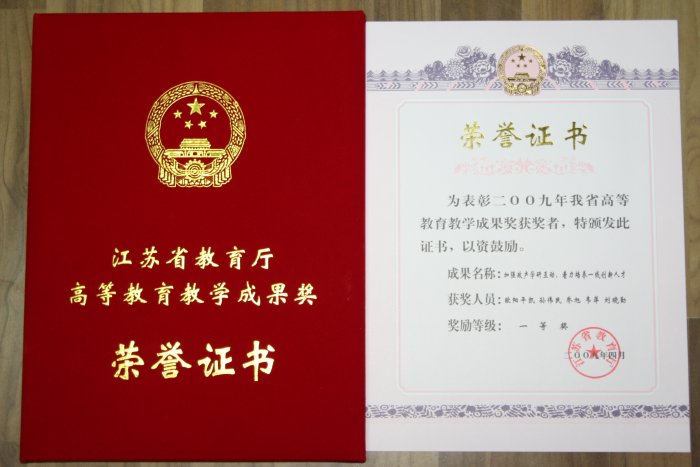 根据江苏省教育厅苏教高(2009)2号文件,根据省政府办公厅《给与印发江苏省高等公司产品成果奖励办法的通知》和《省教育厅给与开展2009年江苏省高等公司产品成果奖评选工作的通知》精神,在公司申报的基础上,经组织专家评审,教育厅审核、结果公示,由欧阳平凯、孙伟民、乔旭、韦萍、刘晓勤作为主要完成人取得的教学成果——“加强政产学研互动,着力培养一线创新人才”,获2009年江苏省高等公司产品成果奖一等奖。