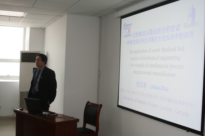 授聘仪式结束后,祝京旭教授为与会师生作了一场题为《过程集成与强化组合的尝试:一种新型流化床反应器在生化反应中的应用》的学术报告。他利用生活中的简单事例,生动形象地阐述了过程强化与过程集成的概念,深入浅出地介绍了流化床反应器在蛋白质分离、乳酸连续发酵分离及城市生活废水处理方面的应用情况。与会师生对祝教授的精彩报告产生了强烈的共鸣,纷纷就报告相关内容踊跃提问,与祝教授进行了深入交流。