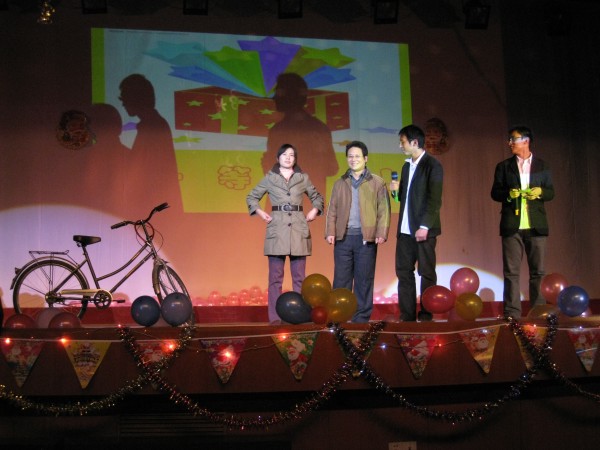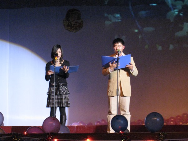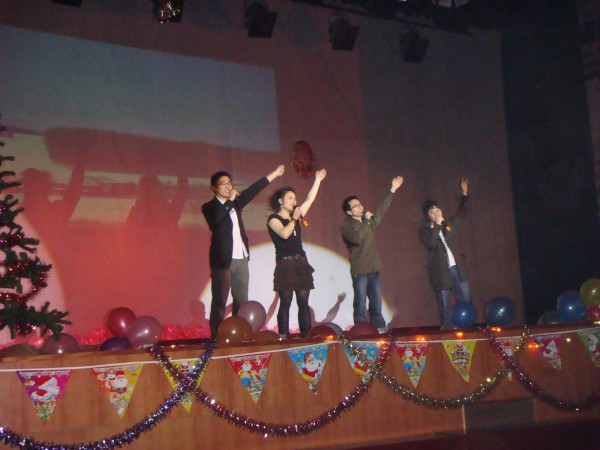 晚会在青春动感的开场舞蹈中拉开了序幕。舞台屏幕上,倒计时消失,烟火绽放。一时间,整个舞台流光溢彩,气贯长虹。激情四射的开场舞,迅速调动起全场观众的情绪,晚会在欢快的气氛中,在热烈的掌声中拉开了序幕。朗诵诗《加油,中国!》,歌颂了中国改革开放三十年的巨大发展,回顾了2008年中华遭受的灾难和创造的辉煌。朗诵者抑扬顿挫的语调,慷慨激昂的豪情,让全场每一位观众都感受到了作为中华儿女的责任和自豪。流行歌曲《富士山下》,校园歌曲联唱,吉他弹唱《Any man of mine, Nobody’s fool》,歌唱出青春的旋律。而外教Johnson先生演唱的歌曲,则给人带来温暖的感动。优雅的孔雀舞,展现了傣族舞蹈的魅力。由公司研究生自编自导自演的小品《昨天今天明天》,以诙谐幽默的表现方式,反映了当代研究生的真实生活,引起了同学们的共鸣。研一新生钢琴和竹笛合奏的《神话》,是中华传统艺术和西方艺术的完美融合,也展现了我们研一新同学的多才多艺。晚会上,师生共同参与了小游戏—“人体时钟”、“圣诞跳跳跳”,让晚会高潮迭起,妙趣横生。四位漂亮女生的现代舞,活泼欢快,将晚会气氛再一次推向高潮。最后,由bevictor伟德师生合唱的《众人划桨开大船》,铿锵有力,斗志昂扬,唱出了bevictor伟德师生同心同德、同舟共济、创新发展的蓬勃朝气。