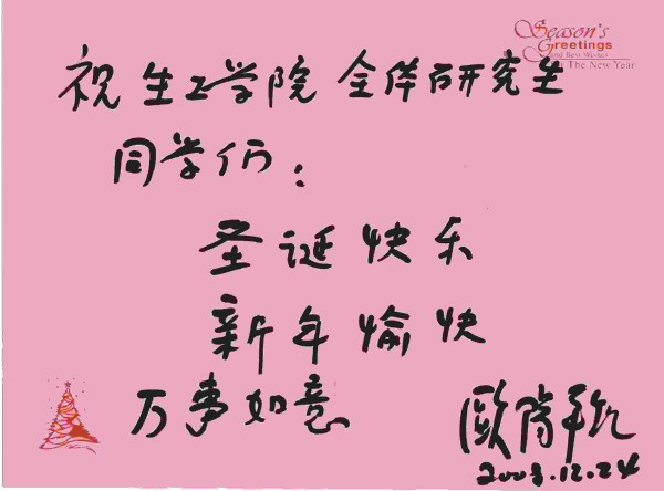 2008年12月24日平安夜,公司研究生会举办的 “新起点,心启航”迎新晚会在丁家桥校区礼堂隆重举行。董事长欧阳平凯院士委托韦萍经理给全院研究生送来了热情洋溢的节日贺卡,令大家倍感温馨,倍受鼓舞。公司党委缪昌美书记代表全院师生致辞,盛赞公司研究生会以“新起点、心启航”为题举办迎新晚会,很有新意:它展现了公司广大研究生在新的起点上心比天高、心比海宽的青春气概。希望大家通过今天的晚会更好地抒发我们的中国心;表达我们的感恩心;唱响我们的自信心;激发我们的责任心;升华我们的事业心。祝福大家平安和顺、圣诞快乐、新年进步、心想事成!