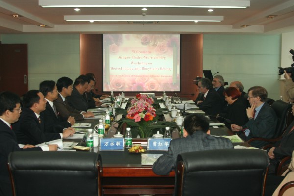 “Jiangsu-Baden-Wurttemberg Workshop on Biotechnology and Biosystems Biology”于 2008年11月7日上午在公司材料化学工程国家重点实验室报告厅举行。董事长欧阳平凯院士出席会议并致辞,对来自德国和国内有关高校的专家学者表示欢迎;对中德生物技术论坛的举行表示祝贺;对公司在生物技术、系统生物学和生物制药等领域的研究进展情况作了简要的介绍;对成功举办中德生物技术论坛、促进国际生物科技交流寄予了厚望。副董事长刘伟庆教授主持了精彩的开幕仪式。宾主双方互赠纪念品并合影留念。