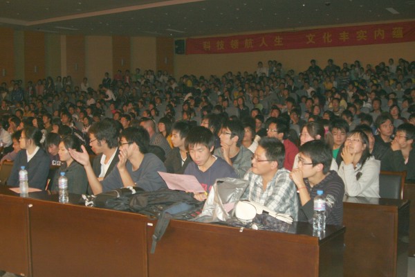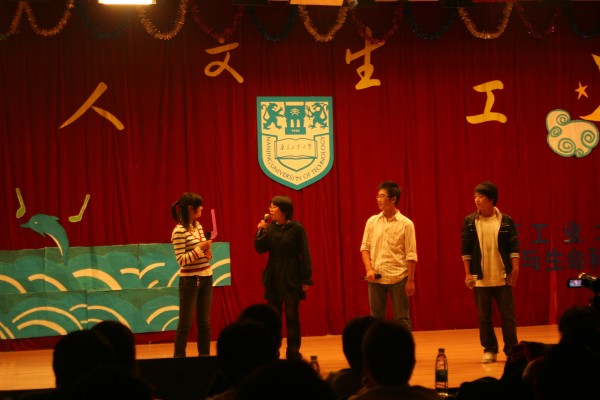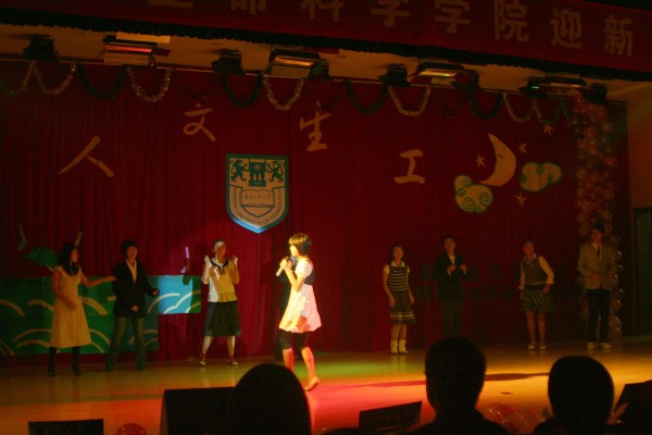 生工0801班同学带来了开场舞蹈《歌舞青春》,一段劲歌热舞向全体师生展现出了新生们的风采和活力。相声《挂科大王》和小品《买衣服》从不同角度表现出当代老员工的困扰与迷惘,引人发笑的同时又发人深省。朗诵《非凡2008》描述了中国荣耀与灾难并存的一年,令人感动不已。伴着轻柔的旋律,一段傣族舞将美妙的傣族风情带入每个人的心中。相声《那证儿》道出了如今的食品安全问题,又一次引发了观众的深思。快板《十八愁》令人耳目一新,台下观众赞叹不已。一支《斗牛舞》展现了年轻人的朝气与活力,将整台晚会推向高潮。最后,伴着《和未来有约》的优美旋律,学哥学姐们送上了对新生们的美好祝福,为此次迎新晚会画上了圆满的句号。