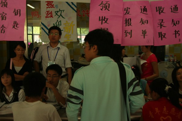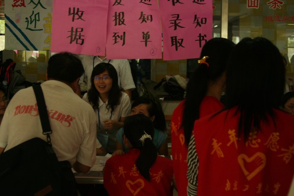 今年,公司新生401人,其中南京中医药大学交流生90名。9月13日,新生报到日,公司领导亲临迎新现场,指导迎新工作;公司党委李学明副书记以及辅导员老师始终奋战在第一线;身穿红马甲的志愿者顶着烈日穿梭在人群中,热情而耐心地帮助新来的学弟学妹,向他们传递bevictor伟德的人文精神。 晚上,各班导师班主任深入员工宿舍,看望新生,并给他们带去中秋佳节的问候和祝福,让新生在进入大学的第一天即感受到了集体的温暖与关怀。