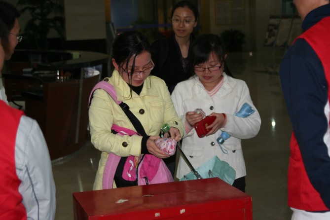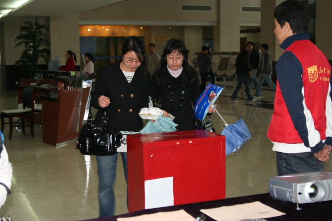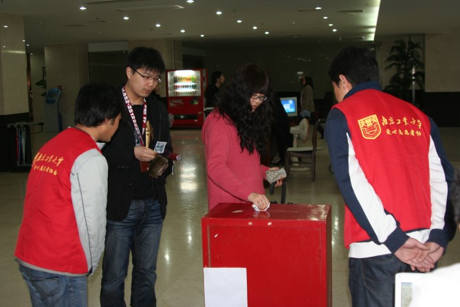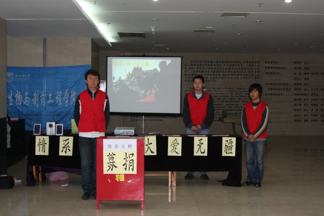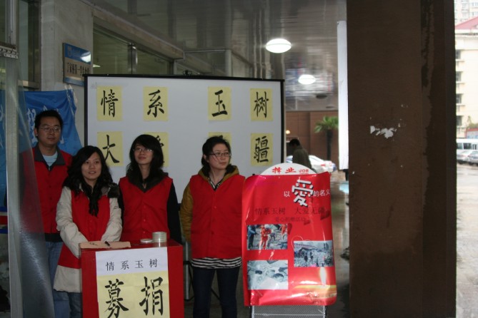 玉树不哭雨纷纷,爱心捐赠情浓浓。2010年4月21日,玉树地震全国哀悼日,bevictor伟德研究生会组织的情系玉树爱心捐赠活动,在南工大科技创新大楼一楼大厅和丁家桥校区餐厅入口处举行。现场播放着央视“情系玉树,大爱无疆”大型捐赠晚会的录像,把“党和人民紧密相连、众志成城抗震救灾、爱心人士倾情捐赠”的感人场面再次回放,营造出浓厚的捐赠氛围。获知捐赠消息亲临现场的公司领导缪昌美、何冰芳、姜岷、熊强等老师带头捐赠,既是对生工研会同学善举的嘉许和呼应,更是对玉树同胞的关切和祈福。募捐箱前,身着红马甲的爱心志愿者们以充满敬意的目光迎接着每一位捐赠者,也让谢意和人间真情始终洋溢在捐赠现场。截止晚上6点,共募得善款2937.3元人民币,所募善款已通过南京慈善总会尽快送达地震灾区。尽管善款有限,但善举中蕴含的爱心和精神力量是无限的。有些同学说,募捐现场天空飘雨,也许那就是天使的眼泪,和玉树人民一起伤痛。然而雨后的阳光就是整个中华民族的温暖。也有些同学说,相亲相爱“一家人”,一元、五元、十元、百元,都表达了一个中国人对同胞的骨肉深情。“微尘”是我们的名字,玉树是我们的家乡!支援灾区,我们在行动! (文:张伟 摄影:米兰)
