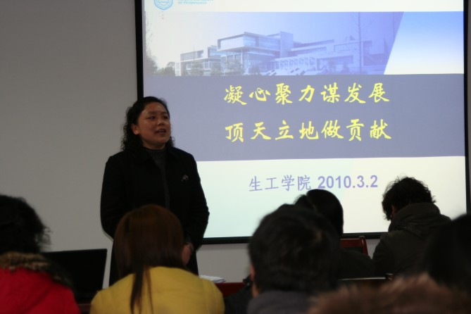 3月5日下午,公司在科技创新大楼1516会议室召开全院教职工会议。董事长欧阳平凯院士应邀出席会议作重要讲话。公司党委书记缪昌美同志传达公司党政工作要点精神,并对2010年公司党政工作进行了部署。经理韦萍教授以“凝心聚力谋发展,顶天立地作贡献”为题,分析了当前形势和任务,强调了工作重点和要求。