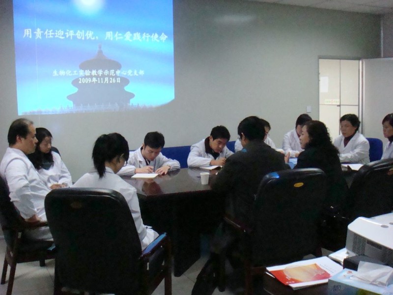 冬天的校园,阳光洒在身上,一如音乐里跳动的旋律,给人以振奋和希望。2009年11月26日上午,由生工实验中心开展的“用责任迎评创优,用仁爱践行使命”主题活动,在江浦校区笃行楼415会议室拉开帷幕。座谈会上,中心负责人谢宁昌副教授回顾了生化工程实验教学示范中心自2008年被列为国家级实验教学示范中心建设单位以来的工作情况,并对照2010年国家级实验教学示范中心评估的目标要求,从实施质量工程、推进创新创业人才培养的高度,就构建“递进式、工程化、创新型”的实验教学体系和“集约、集成、开放”的运行模式,建立师德建设的长效机制等情况进行了介绍。