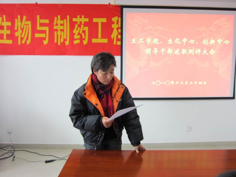 ——国家生化中心副主任于荣华同志述职,并受出差在外的常务副主任应汉杰同志委托代读述职报告