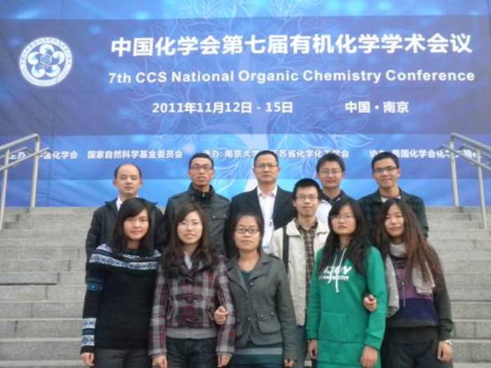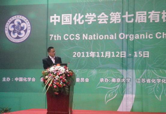 日前,公司韩世清教授携小组全体研究生参加了在南京国展中心召开的“中国化学会第七届有机化学学术会议”,韩世清教授受邀在会上做了题为“Solvent-Free Copper-Catalyzed N-Arylation of Amino Alcohols and Diamines with Aryl Halides” 有关有机合成方法学创新的口头报告。全国有机化学会议由中国化学会和国家自然科学基金委员会主办,会议两年一次,是全国有机化学最高水平的交流平台。