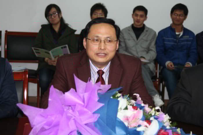 李铁民教授手持员工代表致意的鲜花与参会师生合影留念,并发表了热情洋溢的演讲。他简要介绍了海辰药业发展的历程和辉煌的业绩,让与会师生进一步领略了海辰药业“创业创新创优,争先领先率先”的精神风貌。他对国内外经济形势的分析,尽显其现代企业家的睿智和眼光。他从发展模式向创先驱动的升级转型讲到企业的内涵发展和社会担当,充满了对产学研用结合的美好期待。