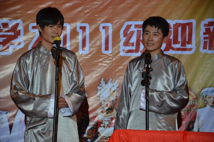 开场舞《斗舞》热情奔放,动感跃动,向全体师生展示了新生的活力与风采;相声《杂说》讲述了青春无敌的新生如何让烦恼与不如意释怀,化忧愁为力量;歌舞剧《渡情》则将大家带到烟雨濛濛的江南古镇,聆听许仙和白娘子千古传奇的爱情故事;新疆舞、蒙古舞、东北二人转同台竞技,表达各民族文化共繁荣、各民族兄弟共团结的美好愿望。新生辅导员登台即席学舞,描绘了师生共乐的美好画面;《nice to meet you》带大家重温往日校园的一幕幕,激起大家心中善良真挚的情感涟漪;《明日之星》带大家观看了一群年轻人为引领时尚潮流、实现明星梦而丑态百出的情景喜剧,引发大家深刻的思考。员工会主席、“小班”携手大一新生用心演唱《爱因为在心中》,使全体师生沉浸在爱的海洋中;三院合作的《青花瓷》融诗歌、舞蹈、书法于一体,展现了中华民族灿烂的古典文化;取材生活、直面娱乐、激情畅想的《新闻麻辣烫》,博得台下掌声阵阵;《相亲相爱》唱出大家欢聚一堂、感恩生活、珍惜彼此的共同心声。