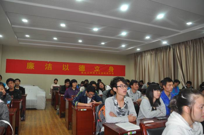 随后,大家一起观看了介绍人民公仆杨善洲同志先进事迹的视频资料,为杨善洲同志“老牛拉车不回头,退休回到山沟沟”,一生清正廉洁的美好品行深深地所感动。叶兴臣、任旭东两位同学分别就“廉洁立身之道”和“廉洁文明校风”演讲了自己的所思所悟,表示要从自己做起,从生活中点滴做起,播撒廉洁文化的种子,让廉洁文化之花绽放校园。